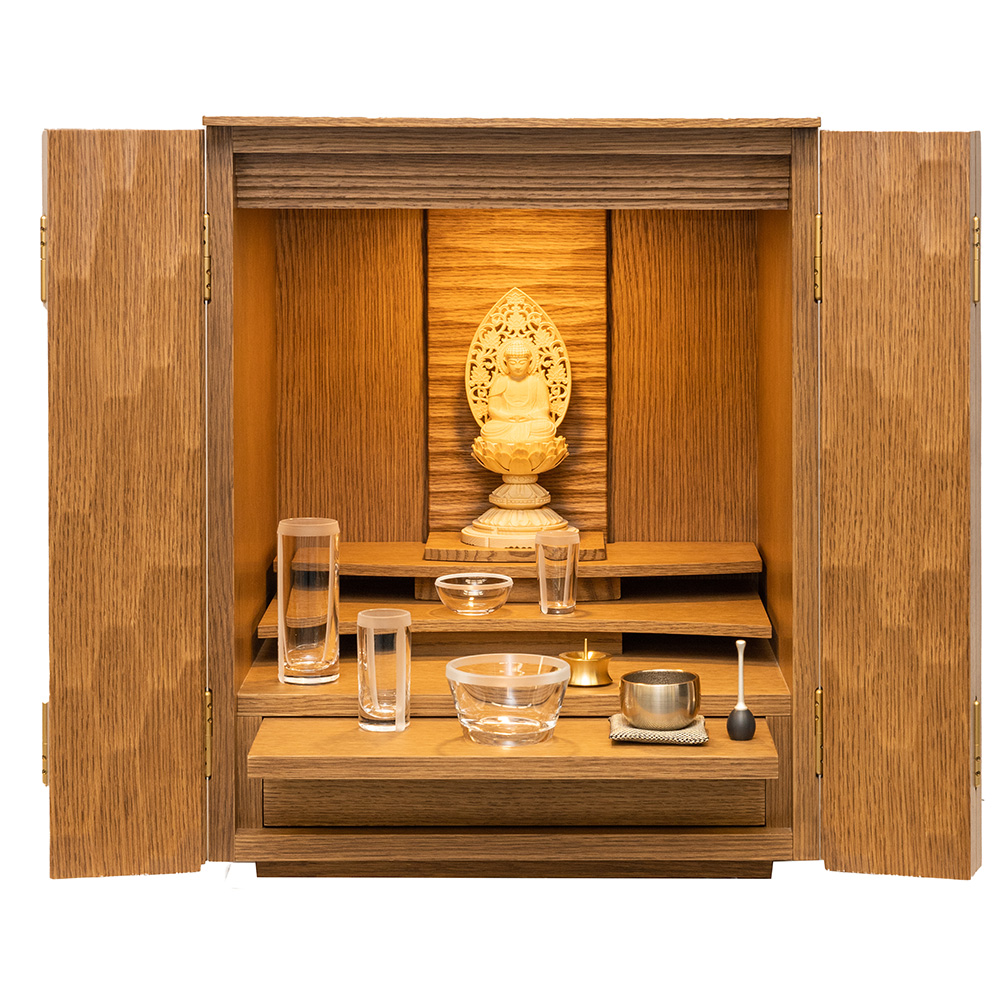 | サイズ | 高さ:54cm×横幅:43cm×奥行:38cm 須弥段高さ:28(28)cm・須弥段奥行き:11(11)cm ※()内数字は本尊台使用時 |